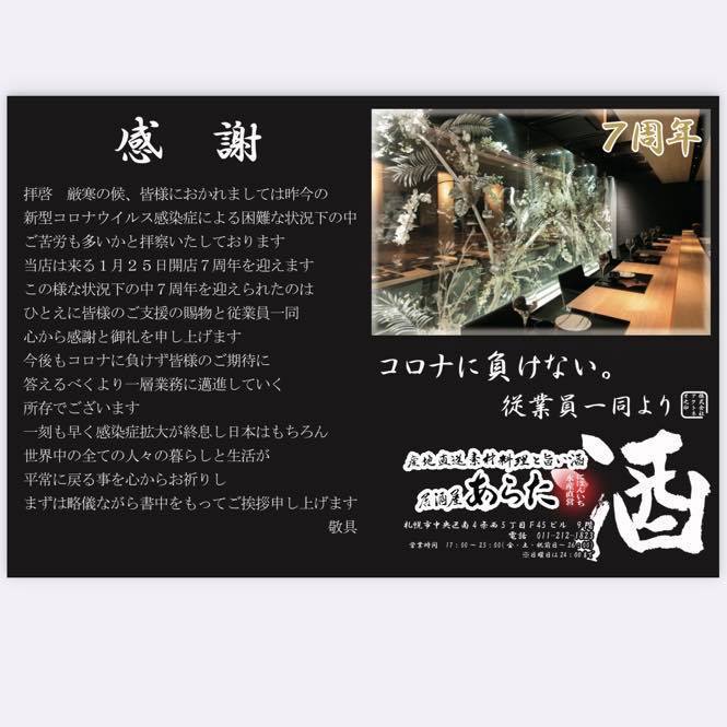 来る令和3年1月25日をもちまして、当店が開店「7周年」の日を迎えます。